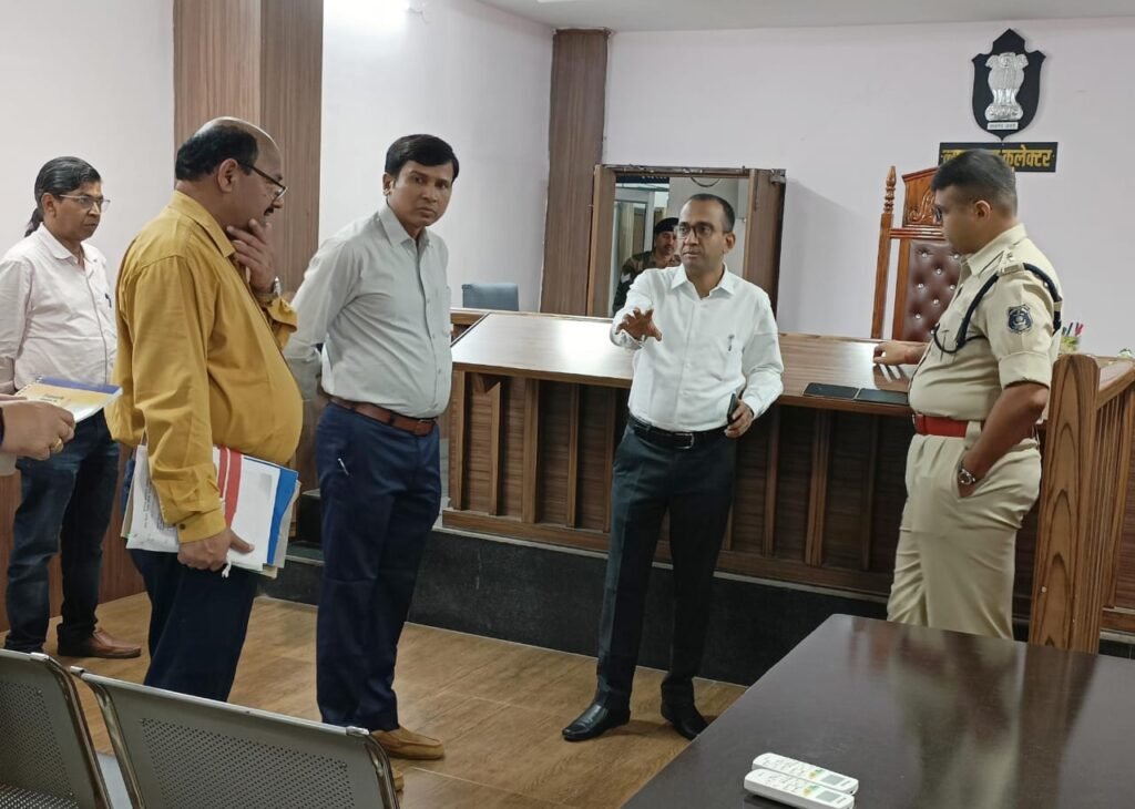 कलेक्ट्रेट परिसर के मुख्य द्वार से प्रस्तावित कक्ष का किया निरीक्षण।