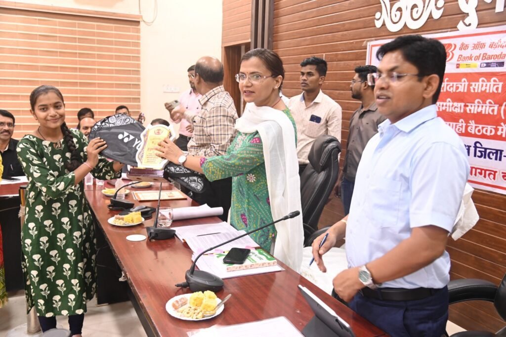 कलेक्टर सुश्री चौधरी ने कहा कि प्राइल्टी सेक्टर में केवल कृषि ही नहीं, उद्यानिकी, मत्स्य पालन, पशुपालन के प्रकरणों पर विशेष फोकस करें बैंकर्स। शासकीय योजनाओं से संबंधित ऋण प्रकरणों को प्राथमिकता से स्वीकृत करें। विभाग प्रकरण स्वीकृति हेतु बैंकों को प्रस्तुत करें। साथ ही बैंकों द्वारा प्रकरण रिजेक्ट के कारणों पर विशेष ध्यान देवें। उन्होंने बैंकों को सीडी रेसियों पर विशेष ध्यान देने कहा। बैठक में वित्तीय वर्ष 2023-24 के दौरान शासकीय योजना और सामाजिक सुरक्षा योजना में उत्कृष्ट प्रदर्शन करने वाले बैंकर्स को प्रशस्ति पत्र व स्मृति चिन्ह देकर सम्मानित किया गया। इसी प्रकार माध्यमिक शिक्षा मंडल द्वारा आयोजित हायर सेकेण्डरी परीक्षा में राज्य में प्रावीण्य सूची में दसवां स्थान प्राप्त कर 95 प्रतिशत अंकों के साथ उत्तीर्ण शासकीय उच्चतर माध्यमिक शाला जेवरा सिरसा की छात्रा कुमारी भावना साहू और हाई स्कूल परीक्षा में प्रावीण्य सूची में आठवा स्थान प्राप्त कर 97.50 प्रतिशत अंकों के साथ दसवीं की परीक्षा उत्तीर्ण करने वाले छात्रा कुमारी दुर्गारानी वर्मा को बैंकर्स की तरफ से प्रतीक चिन्ह, प्रशस्ति पत्र और बैडमिंटन रैकेट भेंट कर सम्मानित किया गया। बैठक में जिला पंचायत के सीईओ श्री अश्वनी देवांगन, जिला अग्रणी बैंक के प्रबंधक श्री दिलीप नायक एवं विभिन्न विभागों व बैंकों के अधिकारी उपस्थित थे।