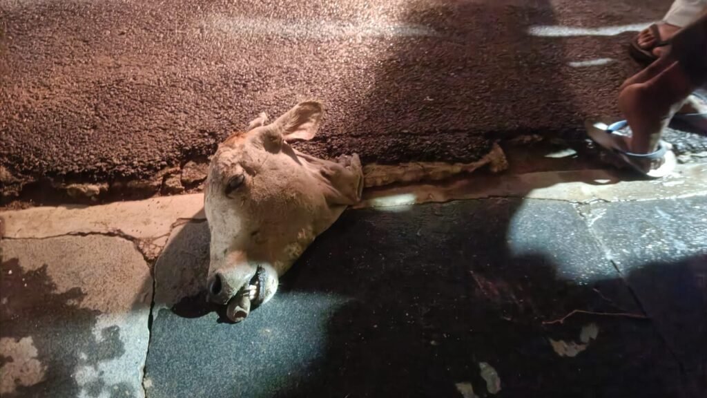 मामले को प्राथमिकता में रखते हुए शीघ्र विवेचना के लिए टीम को नियुक्त किया गया है । प्रथम दृष्टया एक कुत्ते द्वारा उस गौ वंश के सिर को घटना स्थल पे लाते हुए कैमरा फुटेज में देखा गया है। विवेचना जारी है।