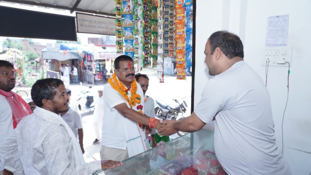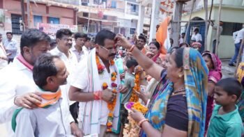 शहर के घर घर मे किया गया राजेन्द्र का स्वागत शहर के बहनों ने भाई का तिलक लगाकर आरती उतारी।