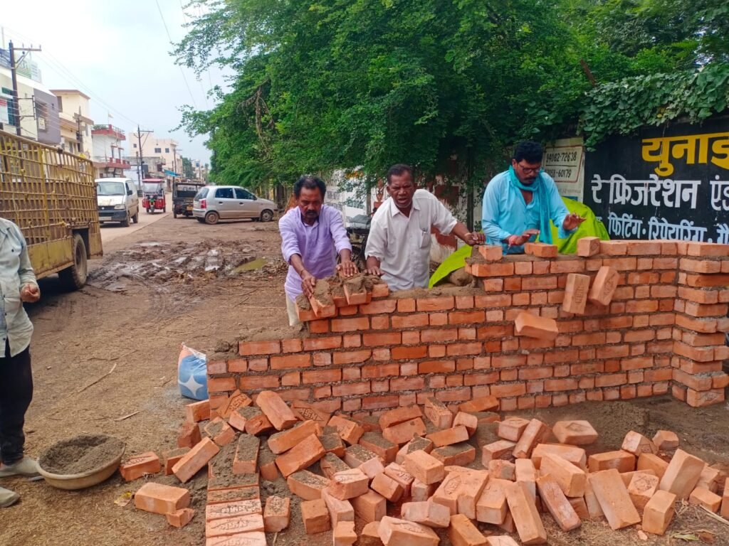 दुर्ग 4 जुलाई 2024 // नगर पालिक निगम सीमा क्षेत्र के अंतर्गत वार्ड क्रमांक 15 एफसीआई गोदाम के बाजू वाली रोड में अतिक्रमण किया जा रहा है सिद्धिविनायक स्टील के सामने शासकीय जमीन पर अवैध कब्ज़ा होने की मैखिक शिकायत आयुक्त लोकेश चन्द्राकर से हुई थी। भवन शाखा के अधिकारियों ने आयुक्त लोकेश चन्द्राकर के निर्देश पर बुधवार को तत्काल कार्रवाई कर लगाए गए सारे अवैध निर्माण बाउंड्रीवाल को उखाड़ फेंका है।अवैध कब्जा कर लिया था।बता दे कि नगर निगम शासकीय सुरक्षित सड़क कब्ज़ा होने से बचाने की मांग आयुक्त से की थी। इस मामले में उन्होंने तत्काल संज्ञान लिया और भवन अधिकारी गिरीश दीवान को निर्देश देते हुए आज उक्त स्थल पर कार्रवाई के निर्देश दिए। में नाली सड़क के किनारे कब्जाकर दुकान की तैयारी की जा रही थी,निगम अतिक्रमण अमला ने कब्जा निर्माण बाउंड्रीवाल को उखाड़ फेंका है।